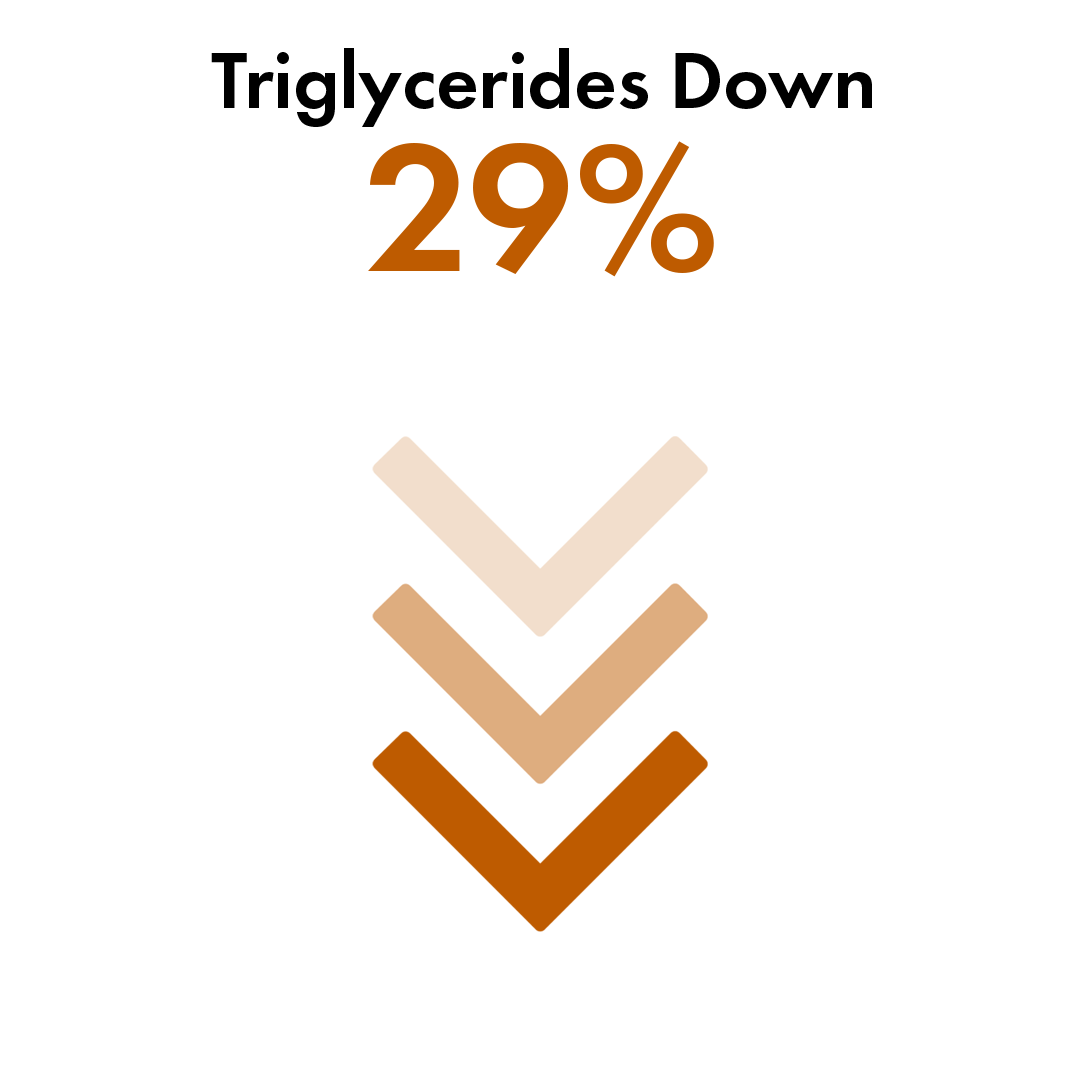 - Reduce triglycerides by 29%