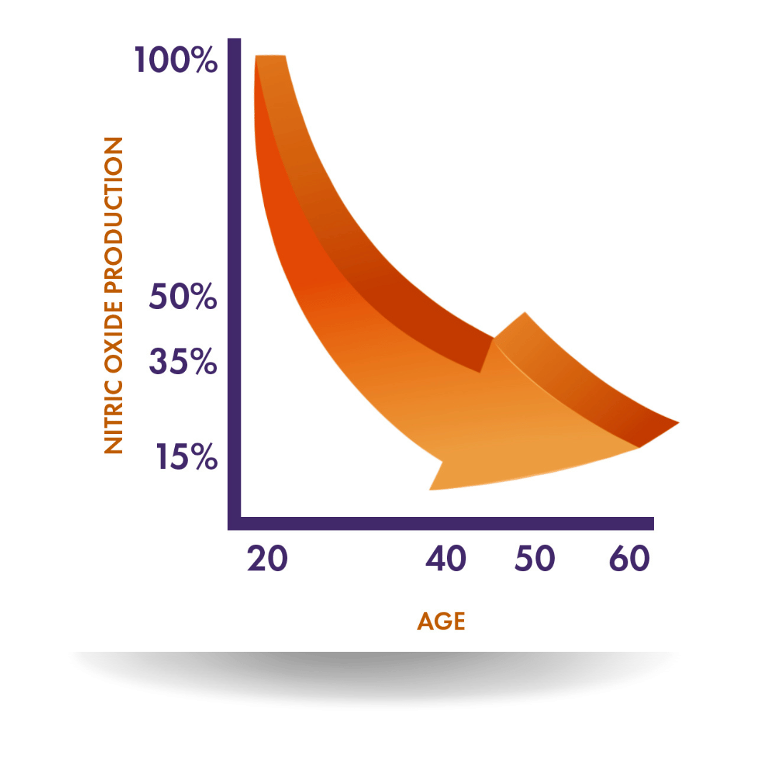 Now when you’re in your 20’s your body has plenty of Nitric Oxide. In fact, it’s at its peak.